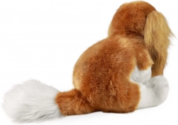 Gedetailleerde uitwerking van het ras Cavalier King Charles Spaniël met lange oortjes, glanzende oogjes en een fluffy staart. Het zachte pluche nodigt uit tot eindeloos knuffelen.