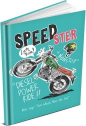 Voor motorliefhebbers is dit herdenkingsboek perfect. De motor op de omslag wordt aangevuld met teksten zoals 'SPEEDSTER' en 'Two Wheels Move the Soul'.