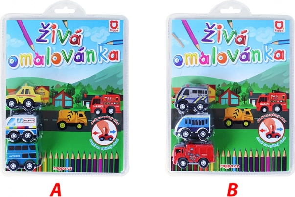 Ontdek een unieke set autootjes met kleurplaten die je kunt inkleuren naar jouw fantasie. De set bevat 3 mini autootjes met achteruitrij functie en kleurplaten met auto thema's.