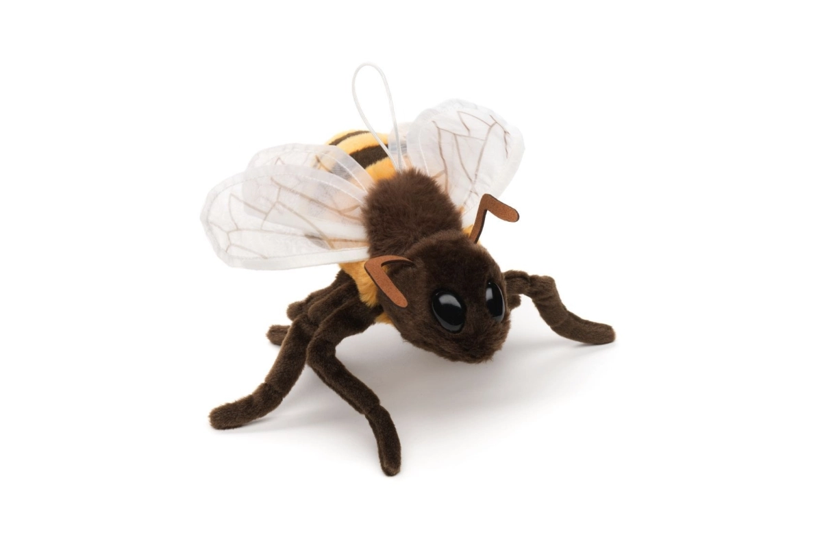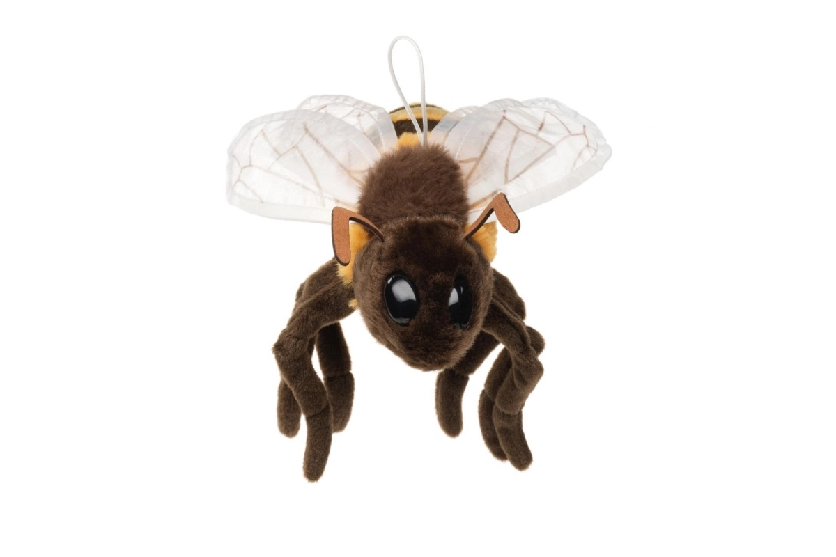 Deze pluchen bij verovert de harten van jong en oud. Hij combineert een zacht, aangenaam oppervlak met stijlvolle details, zoals transparante vleugels met adering en expressieve oogjes. Dankzij het praktische koord hang je hem gemakkelijk boven het bedje, aan de beugel van de kinderwagen of in de kinderkamer.