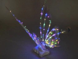 Deze magische kindervleugels bootsen grote vlindervleugels na, die afhankelijk van de lichtval prachtig glanzen en van kleur veranderen. Geïntegreerde LED-verlichting en mechanische vleugelbeweging zorgen voor een spectaculair effect dat elke kleine fee, elf of vlindertje zal betoveren.