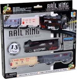 Gedetailleerde historische treinset met uitgebreid toebehoren die zowel kleine als grote treinliefhebbers zal verblijden. Biedt licht- en geluids­effecten, 2 wagons en een locomotief en een complete set rails. Eenvoudig te monteren en met een baancirkel van 67 cm zorgt het voor veel plezier, ook in kleinere ruimtes. Batterijen 2× AA zijn niet inbegrepen.