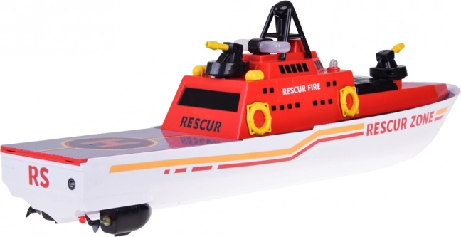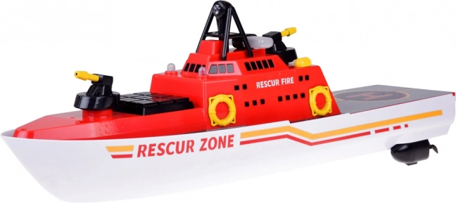 De reddingsboot is ook uitgerust met lichten, wat het ideaal maakt voor spel in de schemering. Deze set bevat een boot, afstandsbediening, oplader en een oplaadbare batterij. Het speelgoed is gemaakt van duurzaam plastic, wat een lange levensduur garandeert.