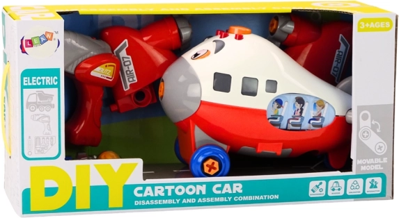 Het rode DIY-vliegtuig is de ideale speelset voor kinderen vanaf 3 jaar die graag ontdekken hoe dingen werken. De set bevat een batterijgevoede kinderboormachine, een schroevendraaier en drie verwisselbare bits, zodat kleine monteurs het vliegtuig keer op keer kunnen demonteren en monteren. Tijdens het rijden draait de propeller, wat bijdraagt aan een authentieke speelervaring.