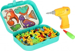 Creatieve mozaïek in een koffertje met accuschroevendraaier – bouwset voor kinderen – Dinosaurus
