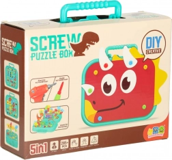 Ontdek een leuke en educatieve speelset voor kleine bouwers: een creatieve mozaïek in een compact koffertje met elektrische schroevendraaier. Kinderen maken van kleurrijke onderdelen en schroefjes zowel platte als 3D-afbeeldingen met dinosaurusthema en ontwikkelen zo hun fijne motoriek, creativiteit en logisch denken. De lichte koffer is makkelijk mee te nemen en houdt alle onderdelen netjes bij elkaar.
