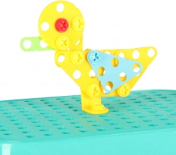 De geperforeerde plaat maakt het mogelijk om kleurrijke pinnetjes en onderdelen vast te schroeven in allerlei patronen – van een zonnetje tot een schattig dier.