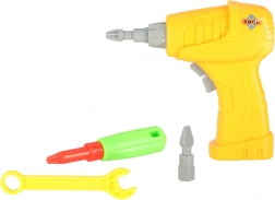 Inclusief elektrische boor op 2× AA-batterijen, schroevendraaier, sleutel en opzetstukken – realistisch knutselplezier, veilig afgestemd op kinderen.