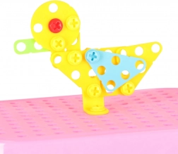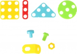 De geperforeerde plaat en gekleurde vormen maken het mogelijk om patronen, afbeeldingen en eenvoudige ruimtelijke vormen te bouwen – de fantasie kent geen grenzen.