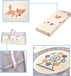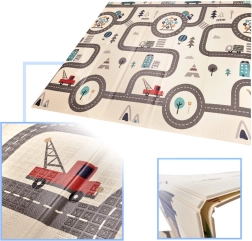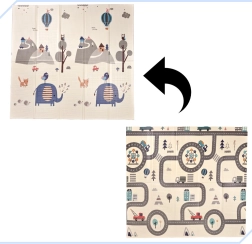 De praktische XPE-schuim speelsmat voor kinderen is dubbelzijdig, opvouwbaar en biedt een ruime, zachte plek om te spelen en de eerste stapjes te zetten. De ene kant toont bosdieren en heuveltjes, de andere wegen en een stad om met autootjes te rijden. Gemakkelijk schoon te maken, isoleert tegen kou en dankzij de dikte van 1 cm verhoogt hij comfort en veiligheid.