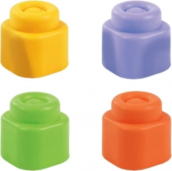 Het pakket bevat vier zachte Clemmy-blokken, die gemakkelijk kunnen worden ingevoerd en verwijderd uit de blok via een geperforeerd segment of bovenop gestapeld kunnen worden. De blok is zacht, veilig en volledig wasbaar, ideaal op maximaal 30°C met een neutrale zeep.