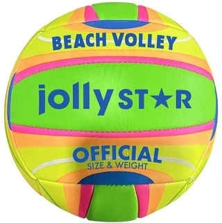 Kwaliteitsbal voor beachvolleybal Jolly Star met officieel gewicht en afmetingen biedt een betrouwbare vlucht en goed balgevoel tijdens het spel. De constructie uit 18 panelen met TPU-textuur en een dikte van 2,5 mm zorgt voor een aangename touch, goede duurzaamheid en stabiele balcontrole in het zand.