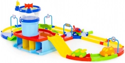 Het systeem van meerkleurige trajecten met bruggen, tunnels en aansluitingen voor voertuigen en vliegtuigen zorgt voor een soepele rit en talloze speelscenario’s.