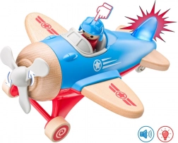 Het vliegtuig is uitgerust met een draaiende propeller en een kleine pilotenfiguur, wat uitnodigt tot interactieve spel.