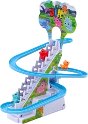 Na het in elkaar zetten van de glijbaan plaatsen kinderen de kleine dinosaurusfiguren op de trapjes, die een integraal onderdeel van het speelgoed zijn. Na activering beginnen de dinosaurussen dankzij een speciaal mechanisme de trap op te klimmen. Daarna glijden ze van de glijbaan naar beneden, wat kinderen veel plezier bezorgt en uitnodigt tot verder spel. Het mechanisme is eenvoudig maar fascinerend voor kleine kinderen die urenlang kunnen kijken naar de klimmende en glijdende dinosaurussen, wat hun geduld en concentratie verder ontwikkelt.