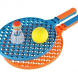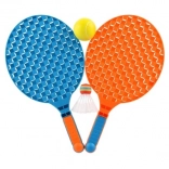 Set voor soft tennis is ideaal voor plezier buiten en op vakantie. Lichte kunststof rackets en toebehoren zijn gemakkelijk draagbaar, wat het mogelijk maakt om overal te spelen.