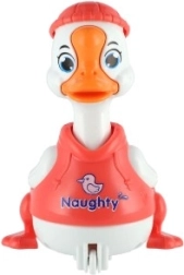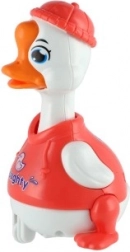 Eenvoudig vliegwielmechanisme: druk op het hoofd van het eendje en het rijdt vooruit zonder batterijen. Geweldig voor plezier en motorische ontwikkeling.