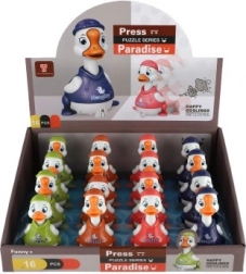 Het eendje met vliegwiel zorgt voor eenvoudige en pakkende speelpret: druk op het hoofd en kijk hoe het dankzij het vliegwielmechanisme vooruit rijdt. Duurzaam plastic, gladde randen en de compacte afmetingen van 7 × 9 × 5 cm garanderen veilig spelen en gemakkelijk vastpakken door kleine kinderhanden.