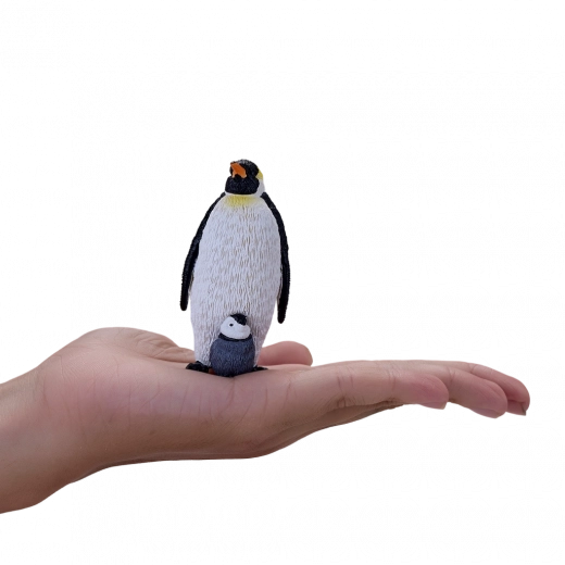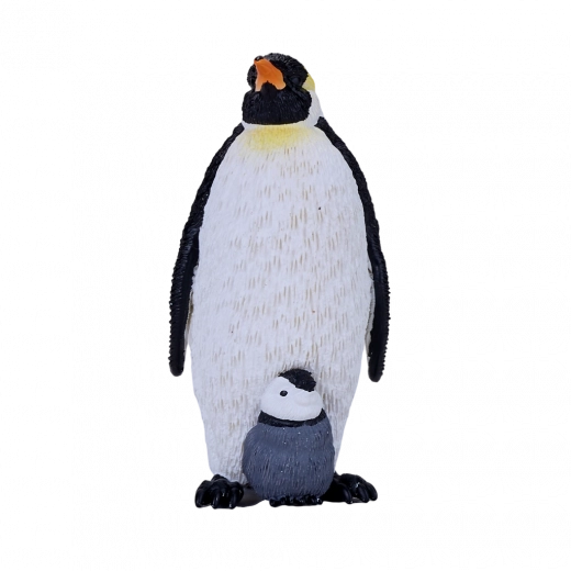 Handgeschilderd figuurtje van de MOJO keizerspinguïn met jong. Realistische details, stevig plastic, ideaal voor kinderen 3+, verzamelaars en schoolprojecten.