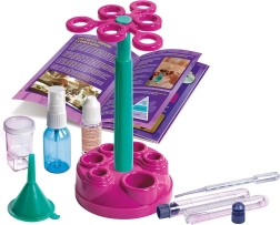 De praktische standaard voor reageerbuizen vergemakkelijkt het afmeten en mengen, terwijl de flacon het bewaren van het gemaakte parfum mogelijk maakt. De geïllustreerde handleiding legt de stappen duidelijk uit en inspireert tot verdere experimenten die creativiteit en interesse in wetenschap stimuleren.