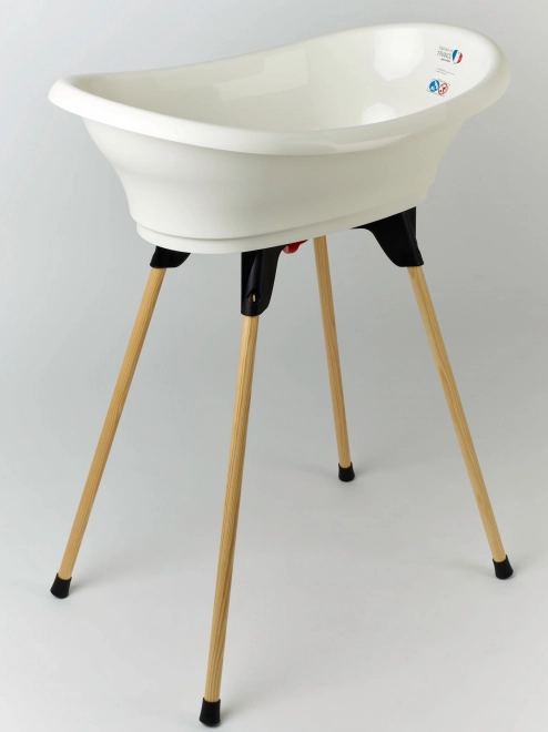 De set met het VASCO babybadje en het bijbehorende onderstel maakt het baden voor ouders en baby gemakkelijker en prettiger.