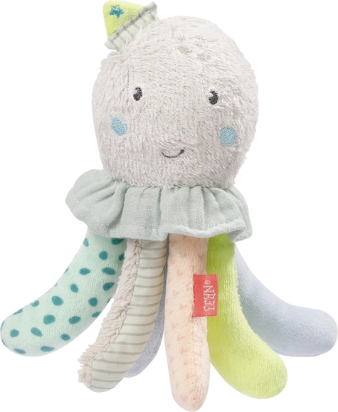 In bad gaan wordt vanaf nu nog leuker. De octopus met geïntegreerd balletje drijft op het water, moedigt kinderen aan om water te ontdekken en stimuleert de zintuigen en de fijne motoriek. De combinatie van zachte stoffen – badstof, mousseline, velours, bouclé en bedrukte stof – voelt prettig aan en is zacht voor de gevoelige babyhuid.