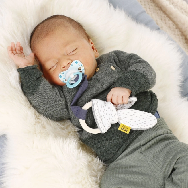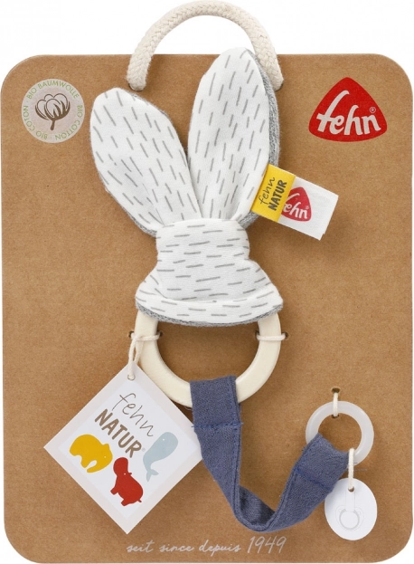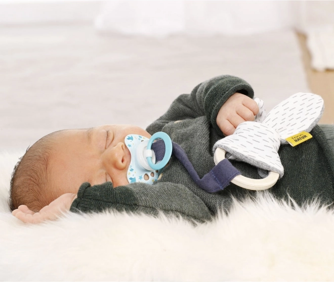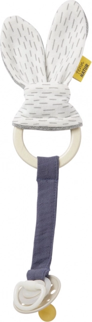 De schattige speenriem met ezelsoortjes ligt prettig in de hand en stimuleert aanraken en spelen. Dankzij de twee ringen kan de speen eenvoudig worden bevestigd en gaat hij niet verloren. De ezeloren zijn gemaakt van 100% biologische katoen.