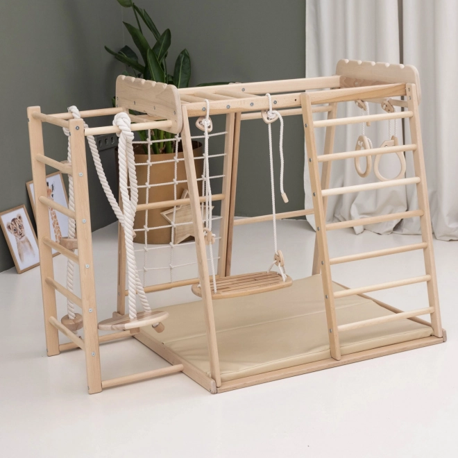 Beige Montessori turnmat voor de thuis-speelplek. Bevordert beweging dankzij de veilige en comfortabele schuimconstructie.