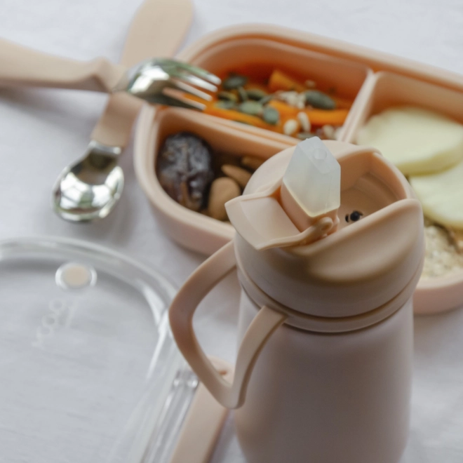 Thermosfles van roestvrij staal met een tuit, daarom geschikt voor kinderen vanaf 6 maanden. Houdt de inhoud tot 24 uur koud of tot 12 uur warm. Het lekdichte deksel houdt de vloeistof in de fles en het praktische lusje maakt dragen en hanteren eenvoudig.