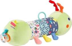 De kruipende rups uit de COLOR Friends-collectie is een geweldig speelgoed vanaf de geboorte. Dankzij het perfecte formaat is hij de ideale metgezel voor de eerste pogingen tot kruipen en lopen. Het zachte oppervlak met diverse speel- en leerelementen zorgt altijd voor een goed humeur bij het kind. Piepje, rammelaar, knisperpapier, grijpringen en een trilmodule stimuleren de ontdekkingsdrang en nieuwsgierigheid van het kind en ondersteunen de tastzin en de motoriek. Een klein spiegeltje bevordert het zelfherkenningsvermogen van het kind. Zo wordt de kleurrijke rups al snel een favoriet.