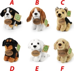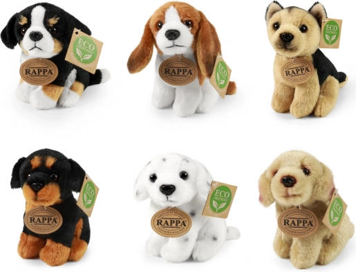 Mooie pluchen honden met een grootte van 12 cm uit de RAPPA collectie, vervaardigd met een milieuvriendelijke vulling van gerecyclede PET-flessen. Ze zijn veilig en zacht om aan te raken.