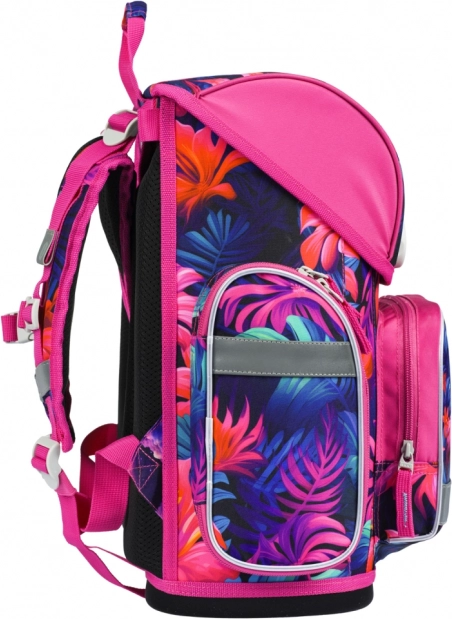 Stijlvolle en functionele schooltas met flamingo-motief, ontworpen voor kinderen vanaf groep 3. Met het ERGO ADJUSTABLE SYSTEM stel je eenvoudig de hoogte en positie van de riemen in zodat de tas perfect op de rug zit. Ergonomisch gevormde rug en volledig verstelbare schouder-, borst- en zijkompressieriemen zorgen voor comfort gedurende de hele schooldag.