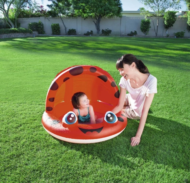 Opblaasbaar kinderzwembad met zonneluifel – kikker/lieveheersbeestje, 97 × 66 cm