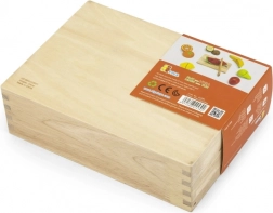 Het praktische houten doosje met transparant deksel dient als opbergbox en als presentatievitrine, zodat alle onderdelen altijd bij elkaar blijven. De set is perfect voor zelfstandig spelen of samen koken met ouders.