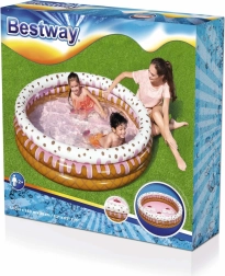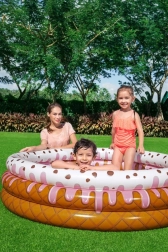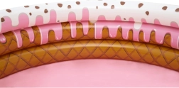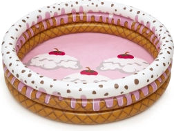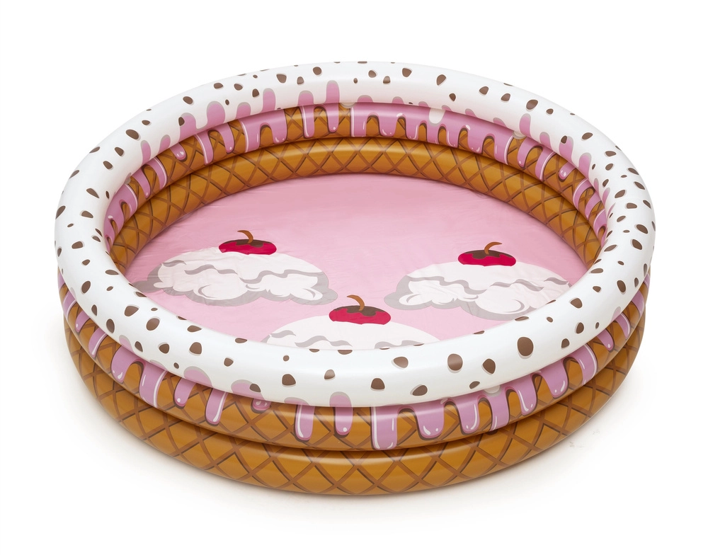 Het opblaasbare ijsjeszwembad is een ideale keuze voor in de tuin tijdens hete zomerdagen, wanneer kinderen verkoeling nodig hebben en willen spelen in het water. Het zwembad is gemaakt van stevig, vooraf getest vinyl. De constructie bestaat uit drie gelijke ringen met zeer sterke zijwanden en een zachte, opblaasbare bodem voor extra comfort. Een reparatiepatch voor eventuele herstelwerkzaamheden is inbegrepen. De diameter van het opgeblazen zwembad is 160 cm en de hoogte 38 cm. Aanbevolen leeftijd: vanaf 2 jaar