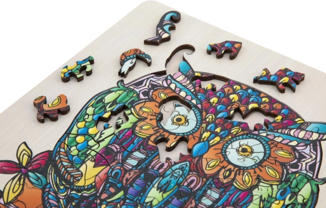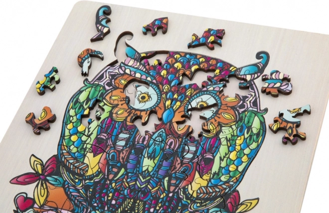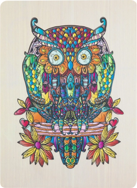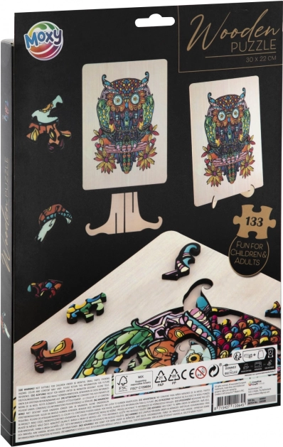 Houten contour puzzel met uilmotief is een leuk speelgoed voor kinderen en volwassenen. Het bevat 133 verschillende gevormde stukjes en een ondergrond voor eenvoudigere montage.