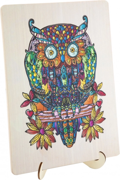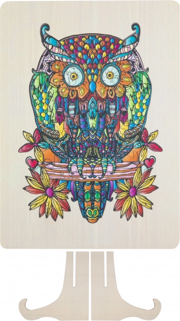 Geniet van het samenstellen van de artistiek gedetailleerde en kleurrijke illustratie van een uil, wat niet alleen plezier maar ook een esthetische ervaring biedt.
