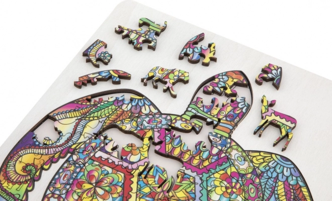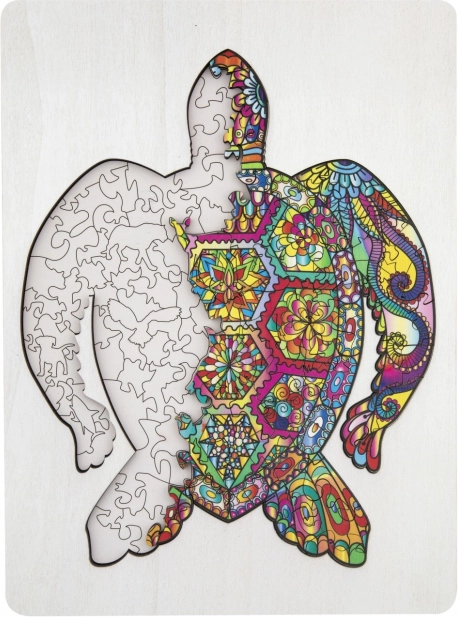 Houten contourpuzzel in de vorm van een schildpad met verschillende gevormde stukjes is ideaal voor kinderen en volwassenen. Het bevat stukjes in de vorm van dieren en voorwerpen, wat bijdraagt aan de aantrekkelijkheid en het plezier.<div>