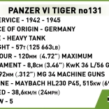 Binnenin de tank is voldoende ruimte voor standaard COBI-figuren en dankzij de te openen luiken is het model eenvoudig te hanteren. Al deze eigenschappen maken de Panzer VI Tiger tot een fantastisch stuk voor je collectie.