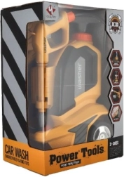 De reiniger maakt het mogelijk de waterstraal aan te passen met de draaibare kap aan het uiteinde van de slang. De set bevat ook een spons, een trekker en een doek, zodat kinderen alles hebben wat ze nodig hebben om te spelen.