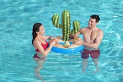 De opblaasbare drankstandaard Bestway Cactus tovert elk zwemmoment om tot een relaxte party. Zes praktische houders houden je bekers en blikjes stabiel drijvend, terwijl twee geïntegreerde koelruimtes de hele dag voor verfrissing zorgen. Het duurzame PVC en het doordachte design garanderen een lange levensduur en makkelijk opbergen.