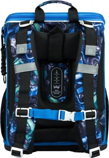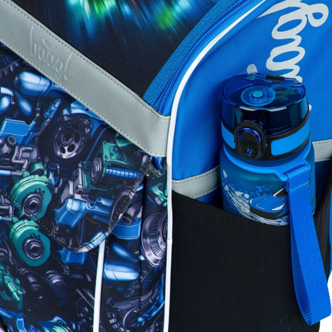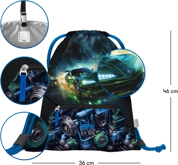 Baagl schoolset Zippy raceauto voor de eerste schooljaren omvat een ergonomische schooltas met verstelbaar ERGO ADJUSTABLE SYSTEM, een eenvaks etui en een gymzak met vak. De schooltas heeft een kantelend openingssysteem, een praktische organizer, reflecterende elementen en waterafstotend materiaal voor dagelijkse betrouwbaarheid.