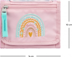 Deze roze BAAGL-portemonnee met regenboog is ideaal voor kinderen – licht, compact en tegelijk betrouwbaar voor het beschermen van opgeborgen spullen. Dankzij het praktische koord draagt het kind hem gemakkelijk om de nek, zodat geld en pasjes altijd binnen handbereik en veilig zijn.