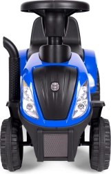 De blauwe looptractor met realistische look en officiële NEW HOLLAND-licentie biedt kinderen uren actieve speelpret, binnen en buiten. De robuuste kunststofconstructie met metalen elementen zorgt voor een lange levensduur en stabiel rijden, terwijl de aanhanger de speelmogelijkheden uitbreidt voor het vervoeren van schatten uit de tuin of zandbak.