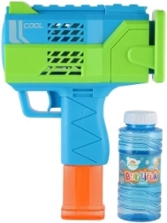 Het bellenblaaspistool met navulling tovert elke middag om in regenboogplezier. Giet de vloeistof in, druk op de trekker en laat je meevoeren door een stroom fonkelende bellen. Een geweldige keuze voor de tuin, kinderfeestjes en zonnige dagen.