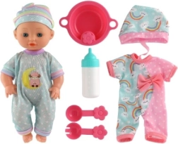In de doos vind je een complete eetset met flesje, kommetje, lepeltje en vorkje, plus een extra outfit om te verkleden. Spelen met de pop bevordert de fijne motoriek en de verbeelding en leert kinderen op een speelse manier verantwoordelijkheid.