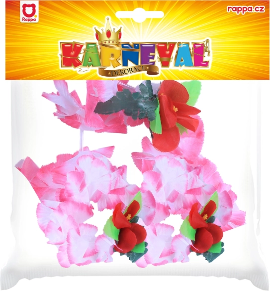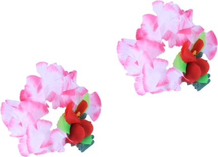 Deze roze set in Hawaï-stijl is ideaal voor themafeesten, carnaval en zomerse vieringen. De textiele bloemen in tinten roze met accenten van rood en groen ogen fris en fotogeniek, zodat je op elke foto opvalt.