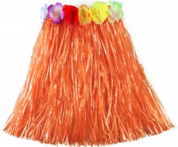 De feloranje rok met bloemenrand zorgt in een oogwenk voor een tropische sfeer op elk feest en optreden. De afbeelding toont een mogelijke styling – de verpakking bevat alleen de rok.