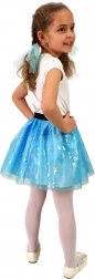 Deze charmante kinder tutu-rok tovert ieder meisje om tot een echte winterprinses. De lichte en luchtige tule in een blauwe tint wordt aangevuld met glinsterende vlokjes die het licht prachtig weerkaatsen. Dankzij de elastische taille is de rok eenvoudig aan te trekken en de hele dag comfortabel te dragen.