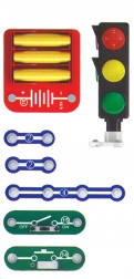 Met deze set kun je eenvoudig een model van een verkeerslicht monteren dat volledig functioneel is en laat zien hoe echte verkeerslichten werken.